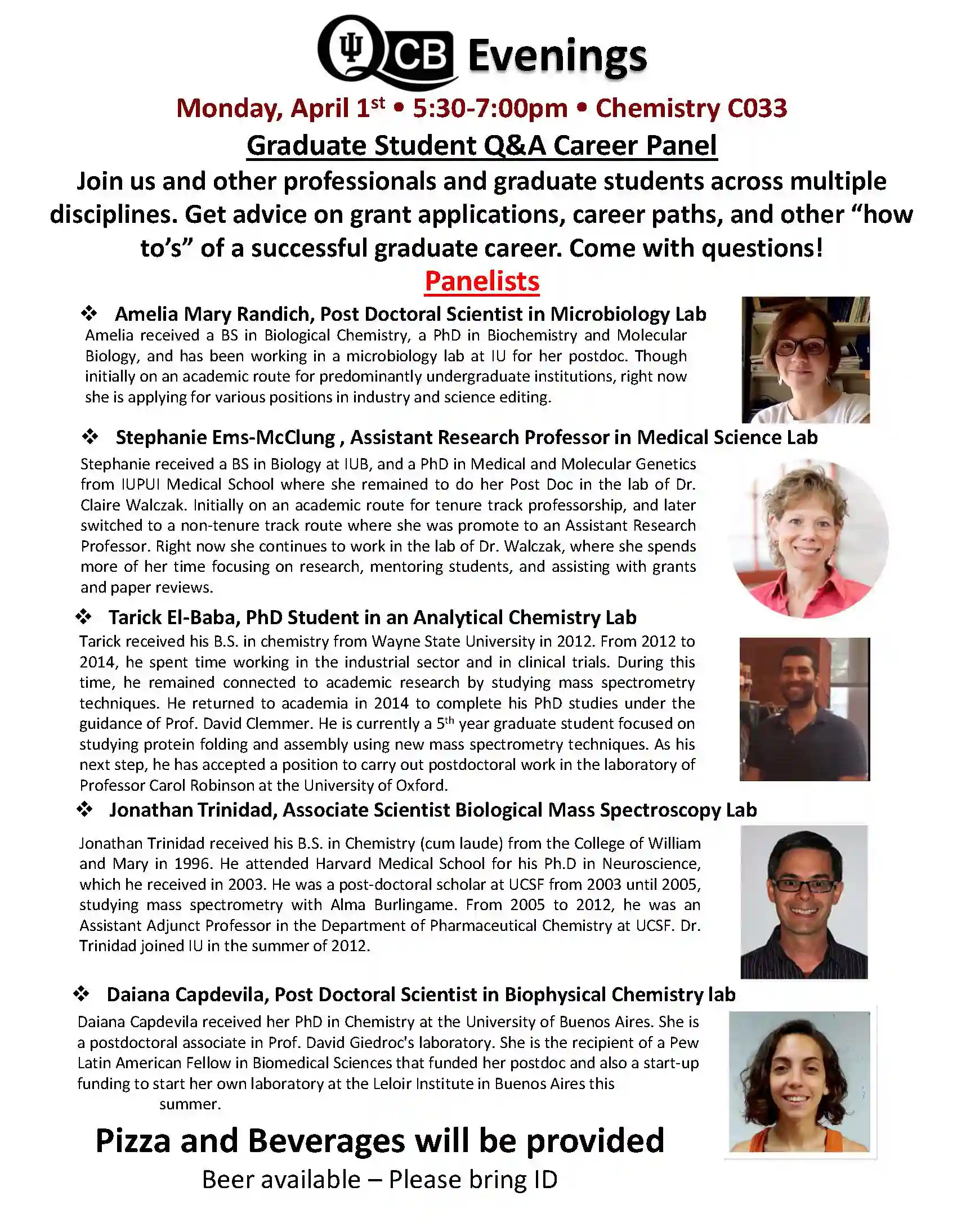 Monday, April 1, 2019 from 5:30-7:00 pm. Located in Chemistry C033